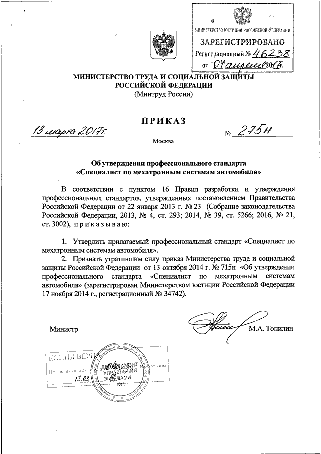 ПРИКАЗ Минтруда РФ от 13.03.2017 N 275н
