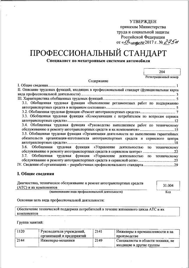"ОБ УТВЕРЖДЕНИИ ПРОФЕССИОНАЛЬНОГО СТАНДАРТА "СПЕЦИАЛИСТ ПО МЕХАТРОННЫМ СИСТЕМАМ АВТОМОБИЛЯ"