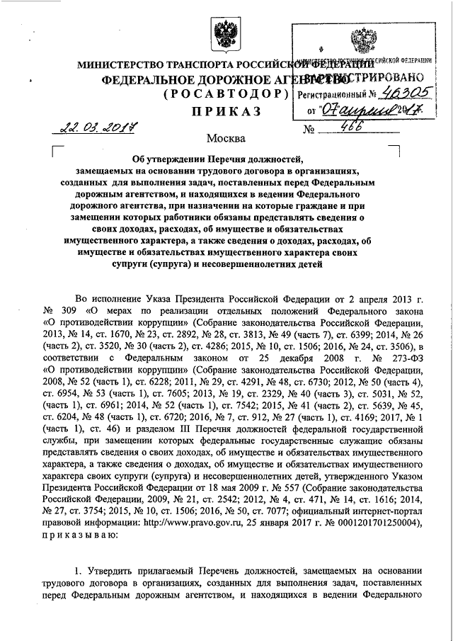 ПРИКАЗ Федерального дорожного агентства от 22.03.2017 N 466