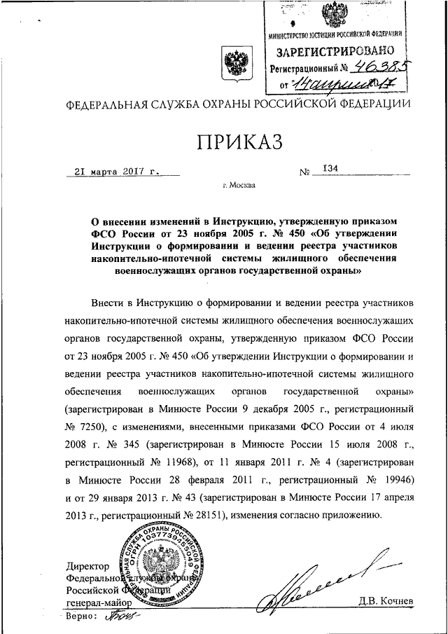 ПРИКАЗ ФСО РФ от 21.03.2017 N 134
