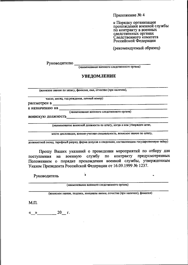 "ОБ ОРГАНИЗАЦИИ ПРОХОЖДЕНИЯ ВОЕННОЙ СЛУЖБЫ ПО КОНТРАКТУ В ВОЕННЫХ СЛЕДСТВЕННЫХ ОРГАНАХ СЛЕДСТВЕННОГО КОМИТЕТА РОССИЙСКОЙ ФЕДЕРАЦИИ"