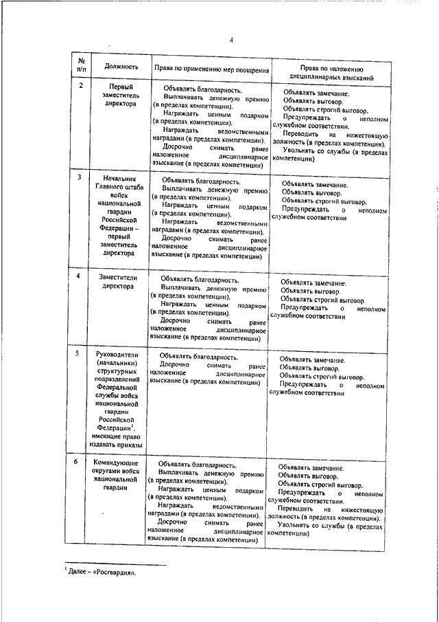 "ОБ УТВЕРЖДЕНИИ ПЕРЕЧНЯ ДОЛЖНОСТНЫХ ЛИЦ ВОЙСК НАЦИОНАЛЬНОЙ ГВАРДИИ РОССИЙСКОЙ ФЕДЕРАЦИИ И СООТВЕТСТВУЮЩИХ ИМ ПРАВ ПО ПРИМЕНЕНИЮ МЕР ПООЩРЕНИЯ И НАЛОЖЕНИЮ ДИСЦИПЛИНАРНЫХ ВЗЫСКАНИЙ В ОТНОШЕНИИ ПОДЧИНЕННЫХ ЛИЦ, ПРОХОДЯЩИХ СЛУЖБУ В ВОЙСКАХ НАЦИОНАЛЬНОЙ ГВАРДИИ РОССИЙСКОЙ ФЕДЕРАЦИИ И ИМЕЮЩИХ СПЕЦИАЛЬНЫЕ ЗВАНИЯ ПОЛИЦИИ"