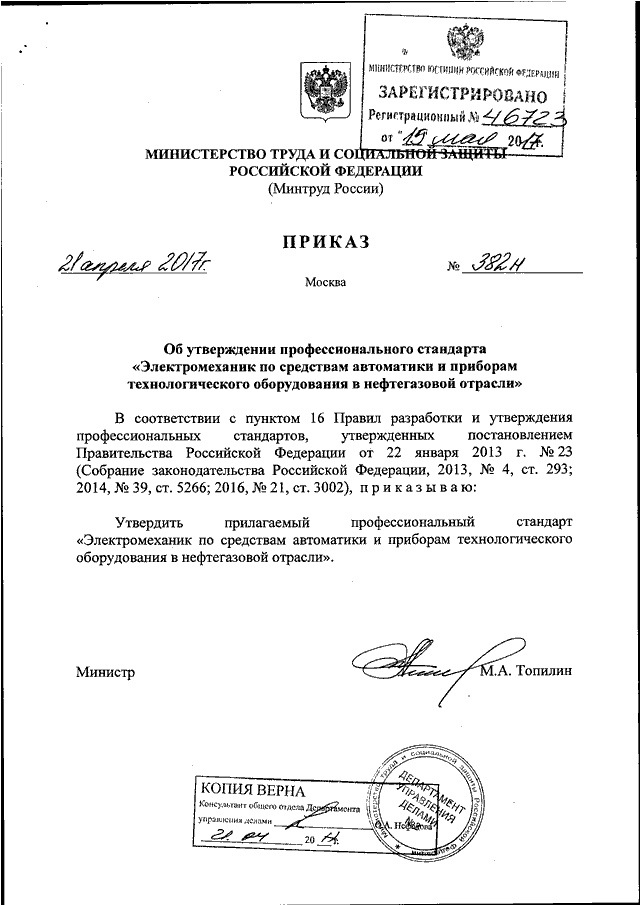 ПРИКАЗ Минтруда РФ от 21.04.2017 N 382н