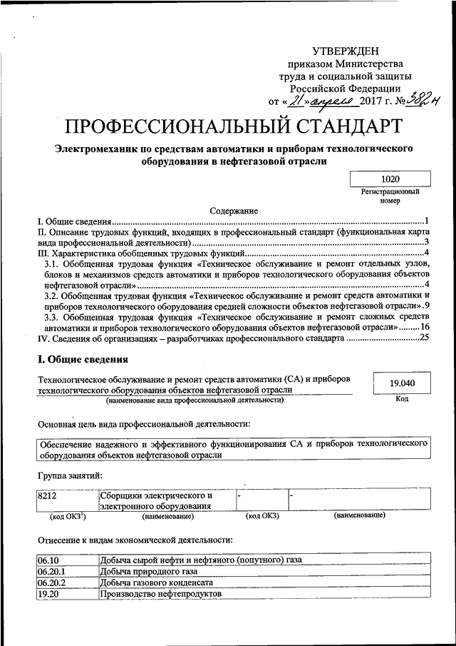"ОБ УТВЕРЖДЕНИИ ПРОФЕССИОНАЛЬНОГО СТАНДАРТА "ЭЛЕКТРОМЕХАНИК ПО СРЕДСТВАМ АВТОМАТИКИ И ПРИБОРАМ ТЕХНОЛОГИЧЕСКОГО ОБОРУДОВАНИЯ В НЕФТЕГАЗОВОЙ ОТРАСЛИ"