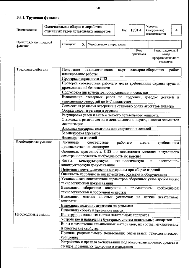 "ОБ УТВЕРЖДЕНИИ ПРОФЕССИОНАЛЬНОГО СТАНДАРТА "СЛЕСАРЬ - СБОРЩИК ЛЕТАТЕЛЬНЫХ АППАРАТОВ"