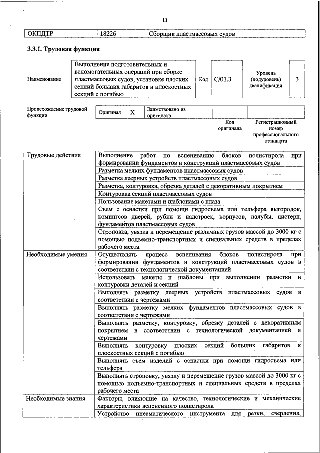 "ОБ УТВЕРЖДЕНИИ ПРОФЕССИОНАЛЬНОГО СТАНДАРТА "СБОРЩИК ПЛАСТМАССОВЫХ СУДОВ"