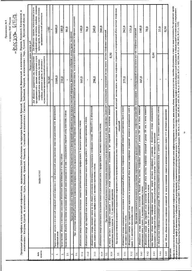 "ОБ УТВЕРЖДЕНИИ ТАРИФОВ НА УСЛУГИ МЕСТНОЙ, ВНУТРИЗОНОВОЙ И МЕЖДУГОРОДНОЙ ТЕЛЕФОННОЙ СВЯЗИ, НА УСЛУГУ ПО ПЕРЕДАЧЕ ВНУТРЕННЕЙ ТЕЛЕГРАММЫ, ПРЕДОСТАВЛЯЕМЫЕ ПАО "РОСТЕЛЕКОМ"