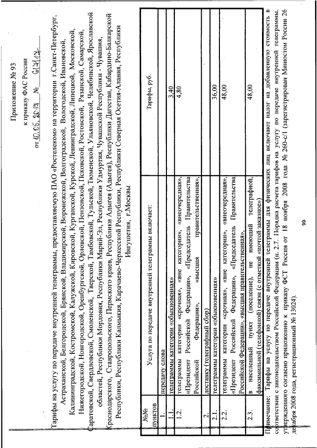 "ОБ УТВЕРЖДЕНИИ ТАРИФОВ НА УСЛУГИ МЕСТНОЙ, ВНУТРИЗОНОВОЙ И МЕЖДУГОРОДНОЙ ТЕЛЕФОННОЙ СВЯЗИ, НА УСЛУГУ ПО ПЕРЕДАЧЕ ВНУТРЕННЕЙ ТЕЛЕГРАММЫ, ПРЕДОСТАВЛЯЕМЫЕ ПАО "РОСТЕЛЕКОМ"