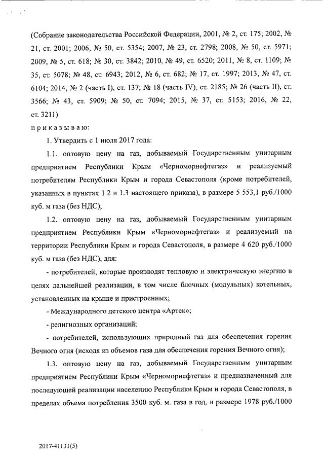 "ОБ УТВЕРЖДЕНИИ ОПТОВЫХ ЦЕН НА ГАЗ, РЕАЛИЗУЕМЫЙ ПОТРЕБИТЕЛЯМ РЕСПУБЛИКИ КРЫМ И ГОРОДА ФЕДЕРАЛЬНОГО ЗНАЧЕНИЯ СЕВАСТОПОЛЯ"
