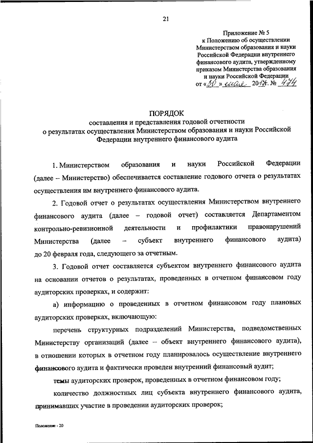 "ОБ УТВЕРЖДЕНИИ ПОЛОЖЕНИЯ ОБ ОСУЩЕСТВЛЕНИИ МИНИСТЕРСТВОМ ОБРАЗОВАНИЯ И НАУКИ РОССИЙСКОЙ ФЕДЕРАЦИИ ВНУТРЕННЕГО ФИНАНСОВОГО АУДИТА"