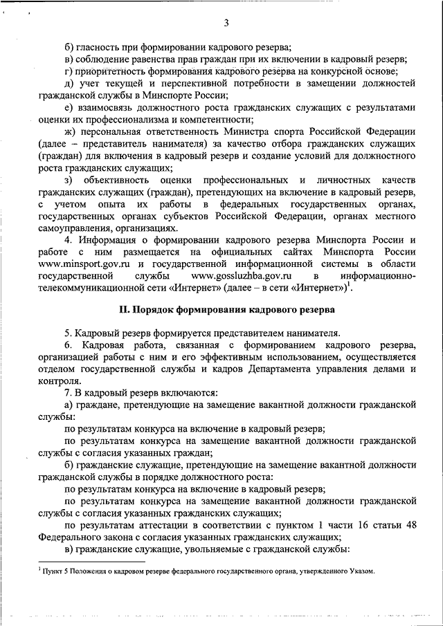 "ОБ УТВЕРЖДЕНИИ ПОЛОЖЕНИЯ О КАДРОВОМ РЕЗЕРВЕ МИНИСТЕРСТВА СПОРТА РОССИЙСКОЙ ФЕДЕРАЦИИ"