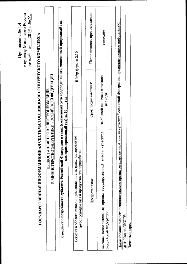 "ОБ УТВЕРЖДЕНИИ ФОРМ ПРЕДОСТАВЛЕНИЯ В ОБЯЗАТЕЛЬНОМ ПОРЯДКЕ ОРГАНАМИ ИСПОЛНИТЕЛЬНОЙ ВЛАСТИ СУБЪЕКТОВ РОССИЙСКОЙ ФЕДЕРАЦИИ И ЮРИДИЧЕСКИМИ ЛИЦАМИ ИНФОРМАЦИИ ДЛЯ ВКЛЮЧЕНИЯ В СЕГМЕНТ В ОБЛАСТИ ГАЗОВОЙ ПРОМЫШЛЕННОСТИ, ТРАНСПОРТИРОВКИ ПО ТРУБОПРОВОДАМ ГАЗА И ПРОДУКТОВ ЕГО ПЕРЕРАБОТКИ ГОСУДАРСТВЕННОЙ ИНФОРМАЦИОННОЙ СИСТЕМЫ ТОПЛИВНО - ЭНЕРГЕТИЧЕСКОГО КОМПЛЕКСА И ТРЕБОВАНИЙ К ЗАПОЛНЕНИЮ ЭТИХ ФОРМ"