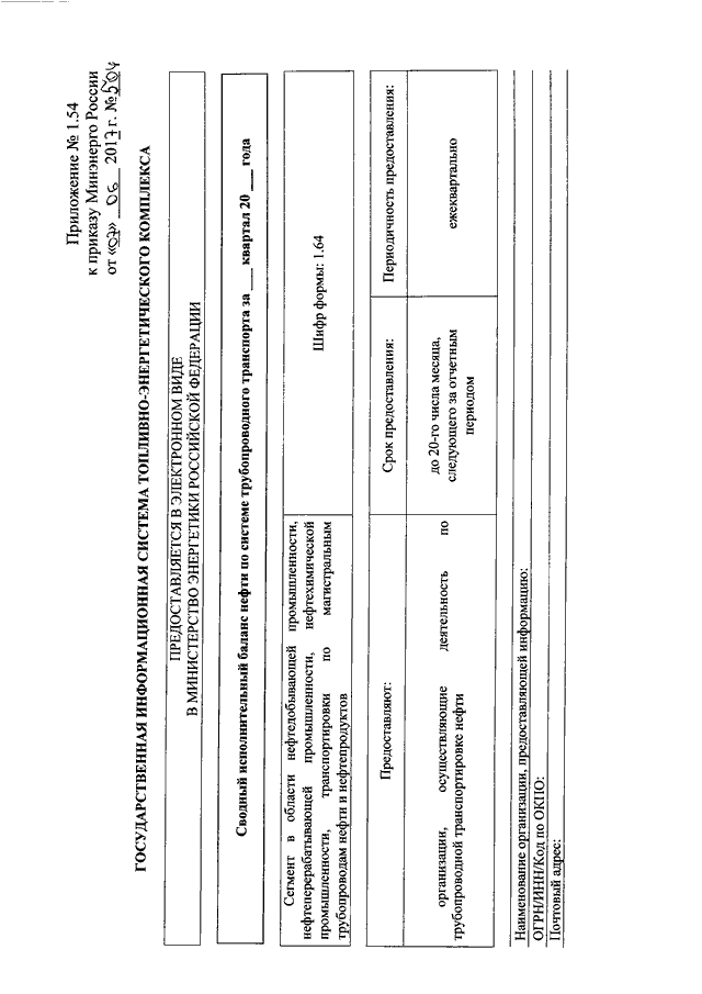 "ОБ УТВЕРЖДЕНИИ ФОРМ ПРЕДОСТАВЛЕНИЯ В ОБЯЗАТЕЛЬНОМ ПОРЯДКЕ ОРГАНАМИ ИСПОЛНИТЕЛЬНОЙ ВЛАСТИ СУБЪЕКТОВ РОССИЙСКОЙ ФЕДЕРАЦИИ И ЮРИДИЧЕСКИМИ ЛИЦАМИ ИНФОРМАЦИИ ДЛЯ ВКЛЮЧЕНИЯ В СЕГМЕНТ В ОБЛАСТИ НЕФТЕДОБЫВАЮЩЕЙ ПРОМЫШЛЕННОСТИ, НЕФТЕПЕРЕРАБАТЫВАЮЩЕЙ ПРОМЫШЛЕННОСТИ, НЕФТЕХИМИЧЕСКОЙ ПРОМЫШЛЕННОСТИ, ТРАНСПОРТИРОВКИ ПО МАГИСТРАЛЬНЫМ ТРУБОПРОВОДАМ НЕФТИ И НЕФТЕПРОДУКТОВ ГОСУДАРСТВЕННОЙ ИНФОРМАЦИОННОЙ СИСТЕМЫ ТОПЛИВНО - ЭНЕРГЕТИЧЕСКОГО КОМПЛЕКСА И ТРЕБОВАНИЙ К ЗАПОЛНЕНИЮ ЭТИХ ФОРМ"
