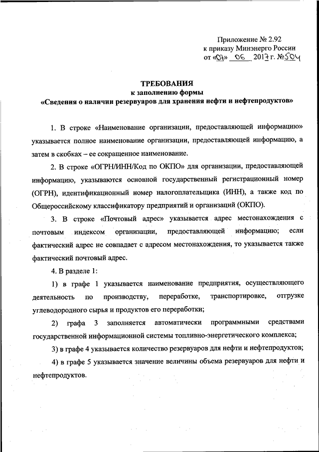 "ОБ УТВЕРЖДЕНИИ ФОРМ ПРЕДОСТАВЛЕНИЯ В ОБЯЗАТЕЛЬНОМ ПОРЯДКЕ ОРГАНАМИ ИСПОЛНИТЕЛЬНОЙ ВЛАСТИ СУБЪЕКТОВ РОССИЙСКОЙ ФЕДЕРАЦИИ И ЮРИДИЧЕСКИМИ ЛИЦАМИ ИНФОРМАЦИИ ДЛЯ ВКЛЮЧЕНИЯ В СЕГМЕНТ В ОБЛАСТИ НЕФТЕДОБЫВАЮЩЕЙ ПРОМЫШЛЕННОСТИ, НЕФТЕПЕРЕРАБАТЫВАЮЩЕЙ ПРОМЫШЛЕННОСТИ, НЕФТЕХИМИЧЕСКОЙ ПРОМЫШЛЕННОСТИ, ТРАНСПОРТИРОВКИ ПО МАГИСТРАЛЬНЫМ ТРУБОПРОВОДАМ НЕФТИ И НЕФТЕПРОДУКТОВ ГОСУДАРСТВЕННОЙ ИНФОРМАЦИОННОЙ СИСТЕМЫ ТОПЛИВНО - ЭНЕРГЕТИЧЕСКОГО КОМПЛЕКСА И ТРЕБОВАНИЙ К ЗАПОЛНЕНИЮ ЭТИХ ФОРМ"
