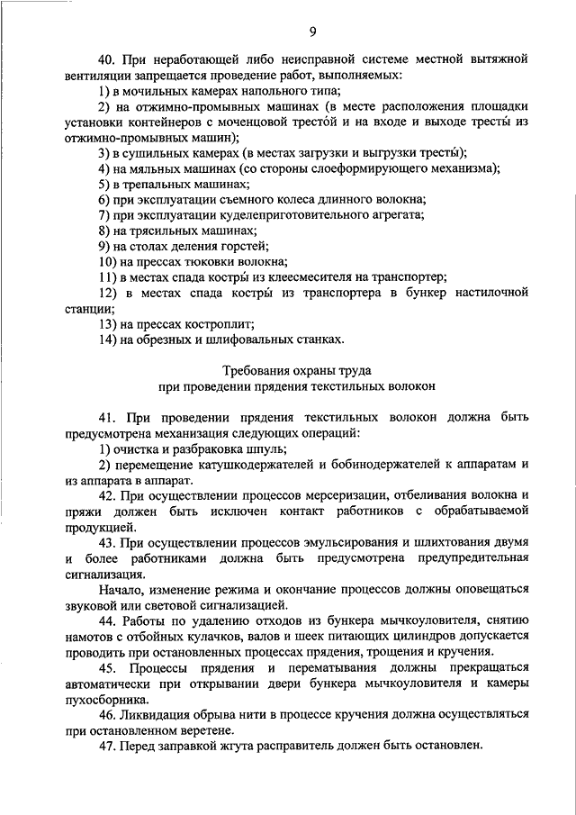"ОБ УТВЕРЖДЕНИИ ПРАВИЛ ПО ОХРАНЕ ТРУДА ПРИ ПРОВЕДЕНИИ РАБОТ В ЛЕГКОЙ ПРОМЫШЛЕННОСТИ"