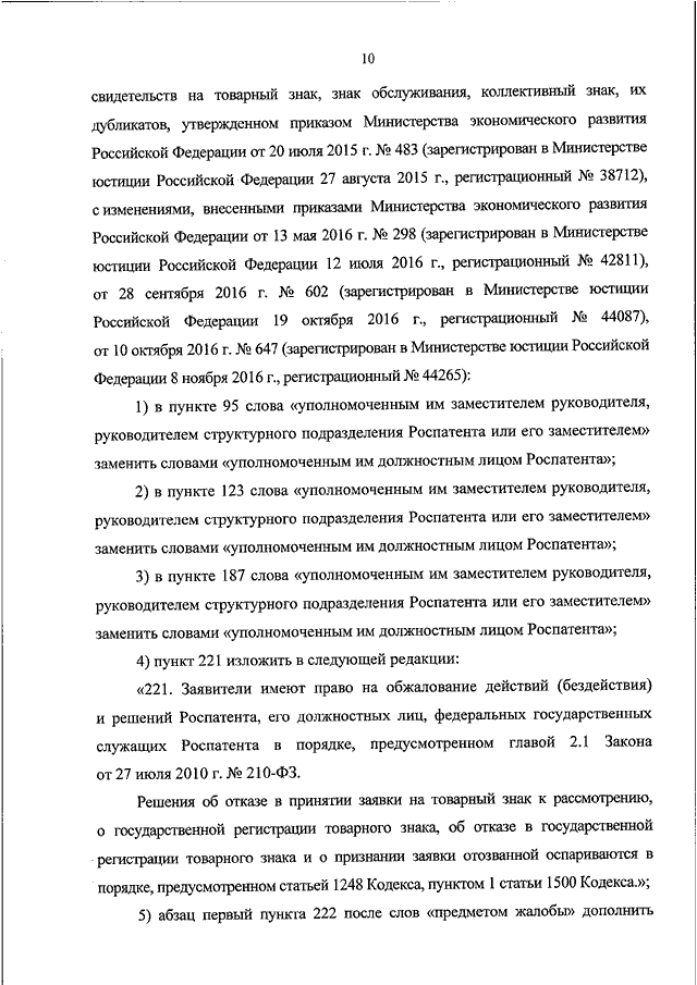 "О ВНЕСЕНИИ ИЗМЕНЕНИЙ В НЕКОТОРЫЕ ПРИКАЗЫ МИНИСТЕРСТВА ЭКОНОМИЧЕСКОГО РАЗВИТИЯ РОССИЙСКОЙ ФЕДЕРАЦИИ В ЧАСТИ УТОЧНЕНИЯ ПОРЯДКА ОБЖАЛОВАНИЯ РЕШЕНИЙ И ДЕЙСТВИЙ (БЕЗДЕЙСТВИЯ) ФЕДЕРАЛЬНОЙ СЛУЖБЫ ПО ИНТЕЛЛЕКТУАЛЬНОЙ СОБСТВЕННОСТИ И ЕЕ ДОЛЖНОСТНЫХ ЛИЦ ПРИ ПРЕДОСТАВЛЕНИИ ГОСУДАРСТВЕННЫХ УСЛУГ, А ТАКЖЕ УТОЧНЕНИЯ СОСТАВА ЛИЦ, УПОЛНОМОЧЕННЫХ НА ПРИНЯТИЕ РЕШЕНИЯ В РАМКАХ ВЫПОЛНЕНИЯ АДМИНИСТРАТИВНЫХ ПРОЦЕДУР"