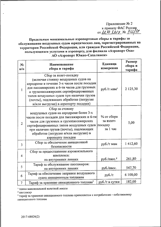 "ОБ УТВЕРЖДЕНИИ ТАРИФОВ (СБОРОВ) НА УСЛУГИ В АЭРОПОРТАХ, ОКАЗЫВАЕМЫЕ АО "АЭРОПОРТ ЮЖНО-САХАЛИНСК"
