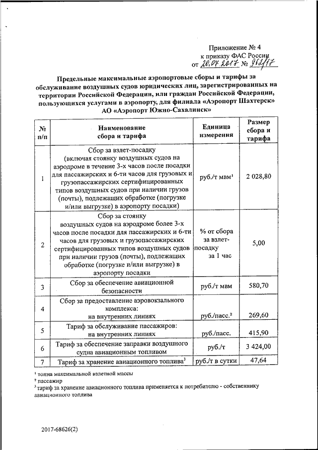 "ОБ УТВЕРЖДЕНИИ ТАРИФОВ (СБОРОВ) НА УСЛУГИ В АЭРОПОРТАХ, ОКАЗЫВАЕМЫЕ АО "АЭРОПОРТ ЮЖНО-САХАЛИНСК"
