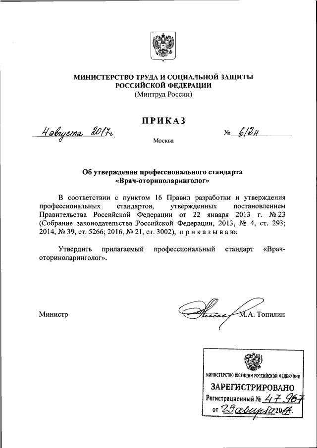 ПРИКАЗ Минтруда РФ от 04.08.2017 N 612н