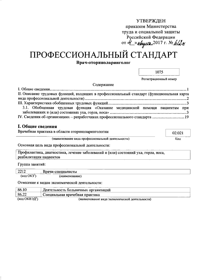 "ОБ УТВЕРЖДЕНИИ ПРОФЕССИОНАЛЬНОГО СТАНДАРТА "ВРАЧ - ОТОРИНОЛАРИНГОЛОГ"