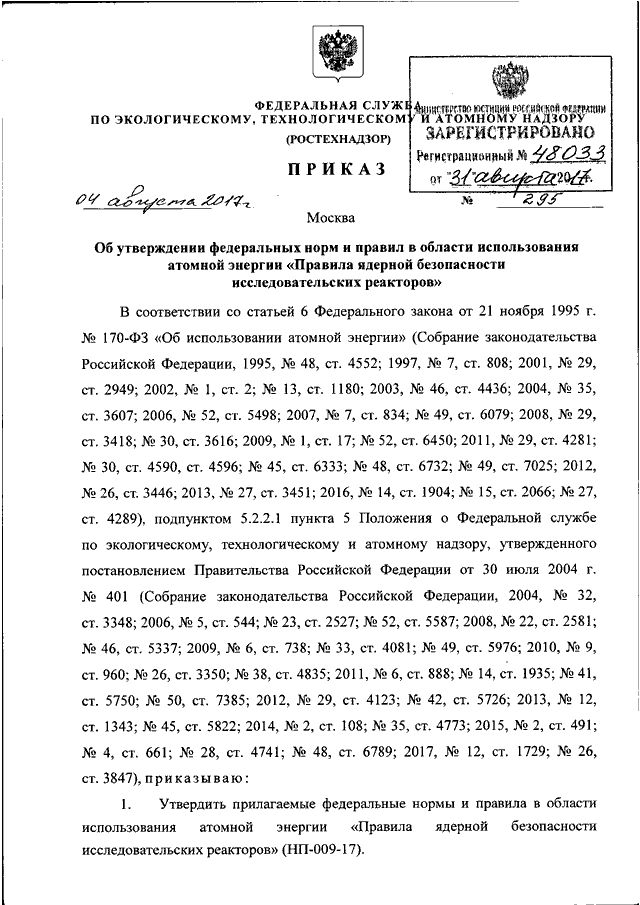 ПРИКАЗ Ростехнадзора от 04.08.2017 N 295