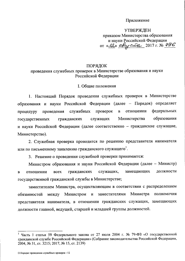 ПРИКАЗ Минобрнауки РФ от 22.08.2017 N 796