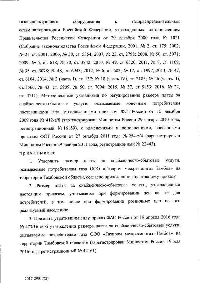 "ОБ УТВЕРЖДЕНИИ РАЗМЕРА ПЛАТЫ ЗА СНАБЖЕНЧЕСКО - СБЫТОВЫЕ УСЛУГИ, ОКАЗЫВАЕМЫЕ ПОТРЕБИТЕЛЯМ ГАЗА ООО "ГАЗПРОМ МЕЖРЕГИОНГАЗ ТАМБОВ" НА ТЕРРИТОРИИ ТАМБОВСКОЙ ОБЛАСТИ"