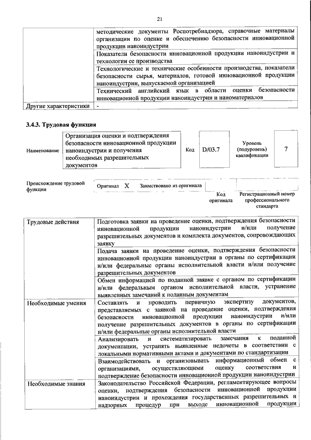 "ОБ УТВЕРЖДЕНИИ ПРОФЕССИОНАЛЬНОГО СТАНДАРТА "СПЕЦИАЛИСТ ПО БЕЗОПАСНОСТИ ИННОВАЦИОННОЙ ПРОДУКЦИИ НАНОИНДУСТРИИ"