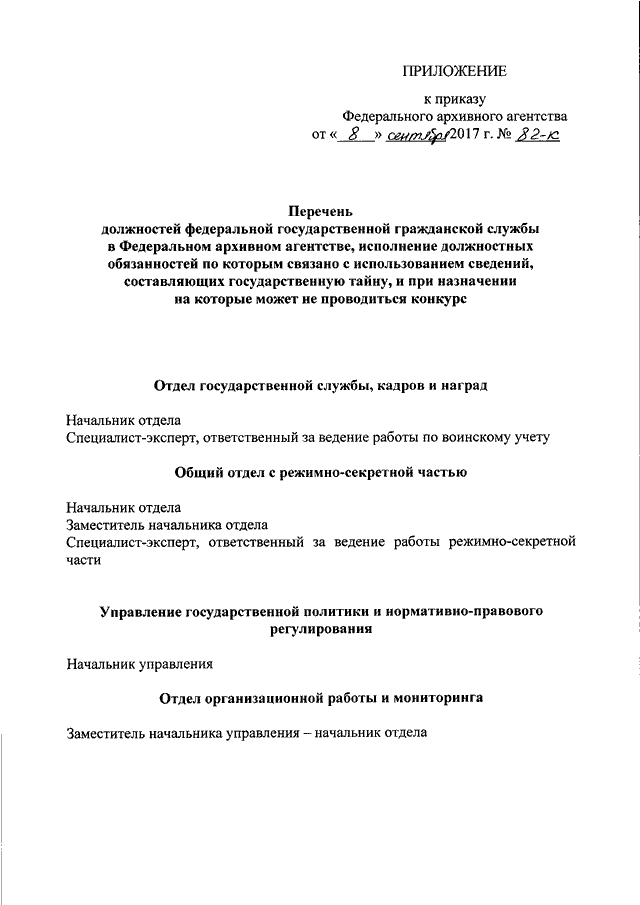 ПРИКАЗ Росархива от 08.09.2017 N 82-к