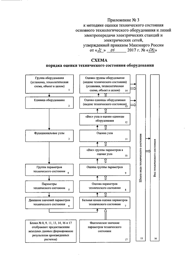 "ОБ УТВЕРЖДЕНИИ МЕТОДИКИ ОЦЕНКИ ТЕХНИЧЕСКОГО СОСТОЯНИЯ ОСНОВНОГО ТЕХНОЛОГИЧЕСКОГО ОБОРУДОВАНИЯ И ЛИНИЙ ЭЛЕКТРОПЕРЕДАЧИ ЭЛЕКТРИЧЕСКИХ СТАНЦИЙ И ЭЛЕКТРИЧЕСКИХ СЕТЕЙ"