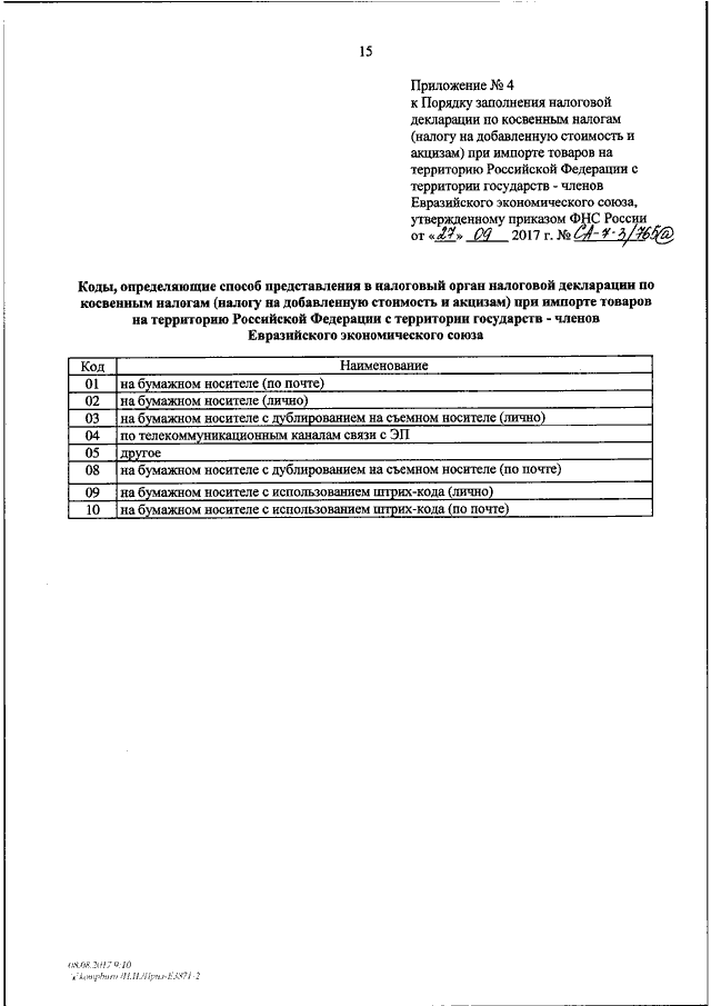 ПРИКАЗ ФНС РФ от 27.09.2017 N СА-7-3/765@