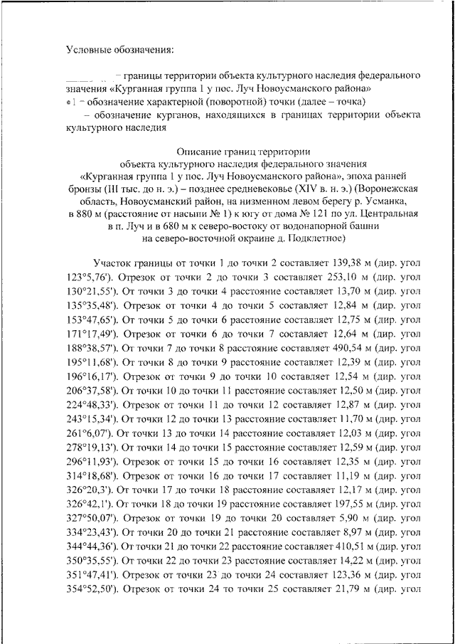 "О ВКЛЮЧЕНИИ ВЫЯВЛЕННОГО ОБЪЕКТА КУЛЬТУРНОГО НАСЛЕДИЯ "КУРГАННАЯ ГРУППА 1 У ПОС. ЛУЧ НОВОУСМАНСКОГО РАЙОНА", ЭПОХА РАННЕЙ БРОНЗЫ (III ТЫС. ДО Н. Э.) - ПОЗДНЕЕ СРЕДНЕВЕКОВЬЕ (XIV В. Н. Э.) (ВОРОНЕЖСКАЯ ОБЛАСТЬ, НОВОУСМАНСКИЙ РАЙОН, НА НИЗМЕННОМ ЛЕВОМ БЕРЕГУ Р. УСМАНКА, В 880 М (РАССТОЯНИЕ ОТ НАСЫПИ N 1) К ЮГУ ОТ ДОМА N 121 ПО УЛ. ЦЕНТРАЛЬНАЯ В П. ЛУЧ И В 680 М К СЕВЕРО - ВОСТОКУ ОТ ВОДОНАПОРНОЙ БАШНИ НА СЕВЕРО - ВОСТОЧНОЙ ОКРАИНЕ Д. ПОДКЛЕТНОЕ) В ЕДИНЫЙ ГОСУДАРСТВЕННЫЙ РЕЕСТР ОБЪЕКТОВ КУЛЬТУРНОГО НАСЛЕДИЯ (ПАМЯТНИКОВ ИСТОРИИ И КУЛЬТУРЫ) НАРОДОВ РОССИЙСКОЙ ФЕДЕРАЦИИ В КАЧЕСТВЕ ОБЪЕКТА КУЛЬТУРНОГО НАСЛЕДИЯ ФЕДЕРАЛЬНОГО ЗНАЧЕНИЯ И УТВЕРЖДЕНИИ ГРАНИЦ ЕГО ТЕРРИТОРИИ"