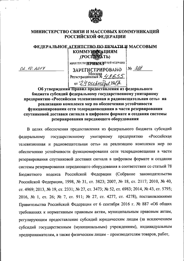 ПРИКАЗ Роспечати от 02.10.2017 N 388