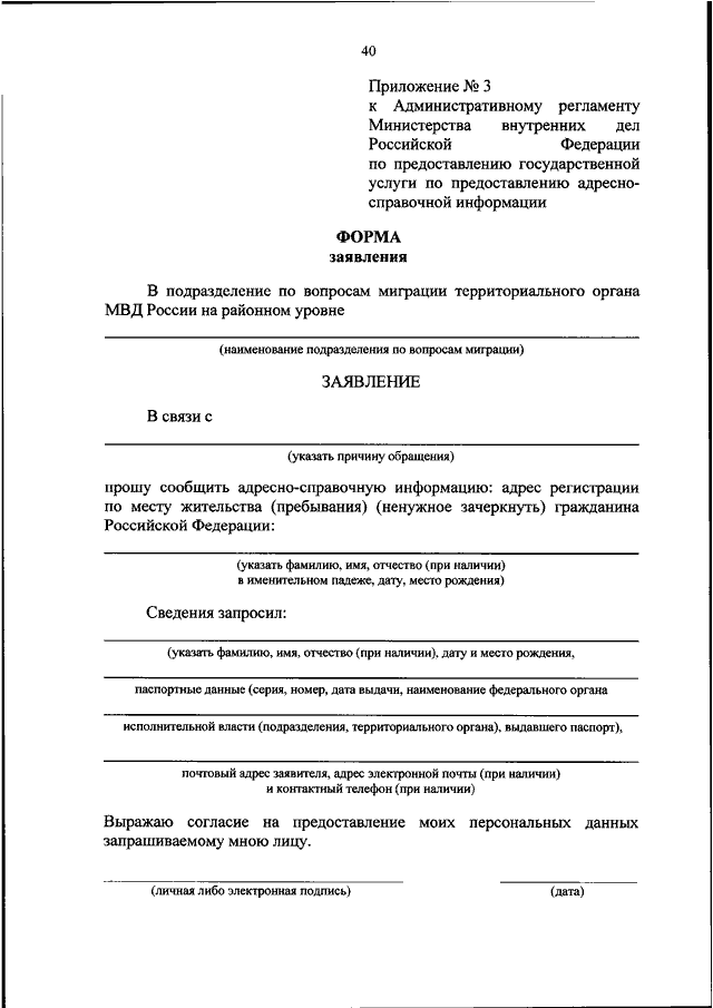 "ОБ УТВЕРЖДЕНИИ АДМИНИСТРАТИВНОГО РЕГЛАМЕНТА МИНИСТЕРСТВА ВНУТРЕННИХ ДЕЛ РОССИЙСКОЙ ФЕДЕРАЦИИ ПО ПРЕДОСТАВЛЕНИЮ ГОСУДАРСТВЕННОЙ УСЛУГИ ПО ПРЕДОСТАВЛЕНИЮ АДРЕСНО - СПРАВОЧНОЙ ИНФОРМАЦИИ"
