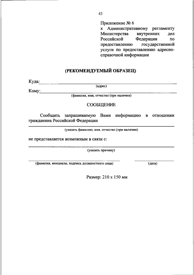 "ОБ УТВЕРЖДЕНИИ АДМИНИСТРАТИВНОГО РЕГЛАМЕНТА МИНИСТЕРСТВА ВНУТРЕННИХ ДЕЛ РОССИЙСКОЙ ФЕДЕРАЦИИ ПО ПРЕДОСТАВЛЕНИЮ ГОСУДАРСТВЕННОЙ УСЛУГИ ПО ПРЕДОСТАВЛЕНИЮ АДРЕСНО - СПРАВОЧНОЙ ИНФОРМАЦИИ"