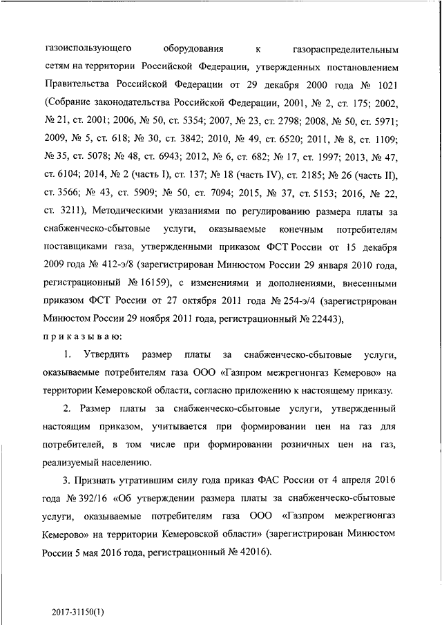"ОБ УТВЕРЖДЕНИИ РАЗМЕРА ПЛАТЫ ЗА СНАБЖЕНЧЕСКО - СБЫТОВЫЕ УСЛУГИ, ОКАЗЫВАЕМЫЕ ПОТРЕБИТЕЛЯМ ГАЗА ООО "ГАЗПРОМ МЕЖРЕГИОНГАЗ КЕМЕРОВО" НА ТЕРРИТОРИИ КЕМЕРОВСКОЙ ОБЛАСТИ"