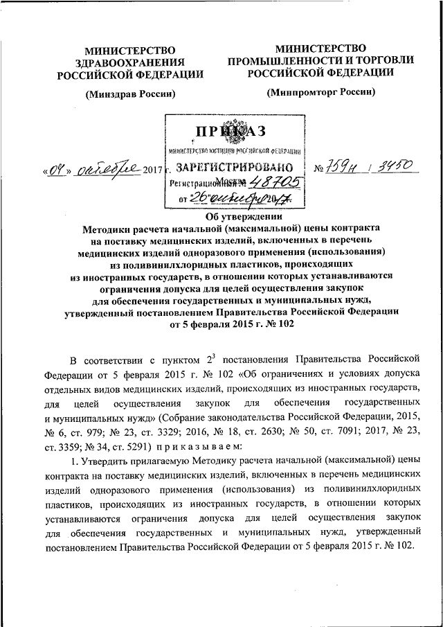 ПРИКАЗ Минздрава РФ N 759н, Минпромторга РФ N 3450 от 04.10.2017
