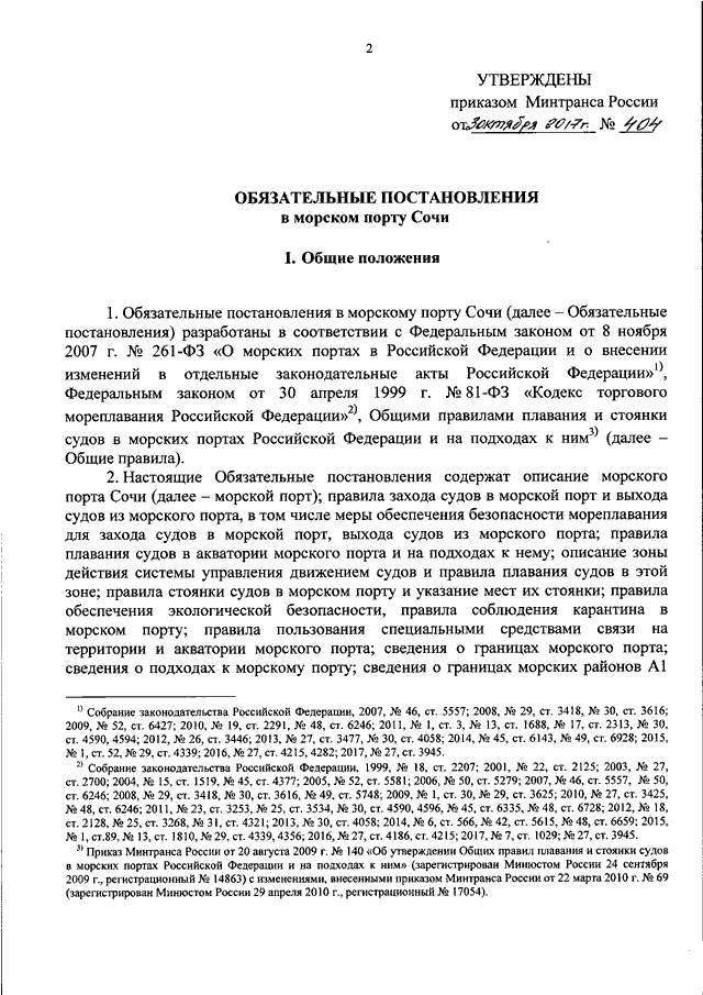 "ОБ УТВЕРЖДЕНИИ ОБЯЗАТЕЛЬНЫХ ПОСТАНОВЛЕНИЙ В МОРСКОМ ПОРТУ СОЧИ"