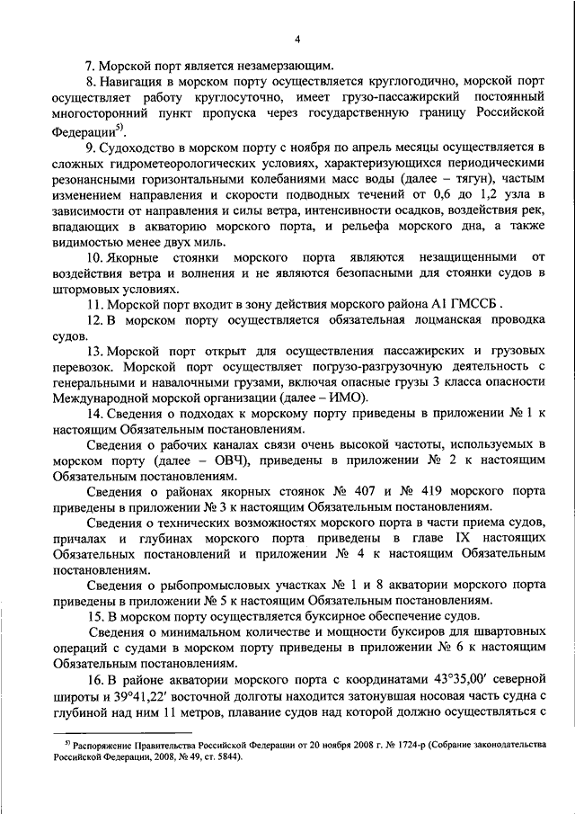 "ОБ УТВЕРЖДЕНИИ ОБЯЗАТЕЛЬНЫХ ПОСТАНОВЛЕНИЙ В МОРСКОМ ПОРТУ СОЧИ"