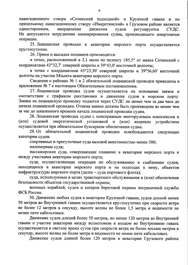 "ОБ УТВЕРЖДЕНИИ ОБЯЗАТЕЛЬНЫХ ПОСТАНОВЛЕНИЙ В МОРСКОМ ПОРТУ СОЧИ"