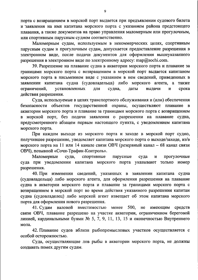 "ОБ УТВЕРЖДЕНИИ ОБЯЗАТЕЛЬНЫХ ПОСТАНОВЛЕНИЙ В МОРСКОМ ПОРТУ СОЧИ"