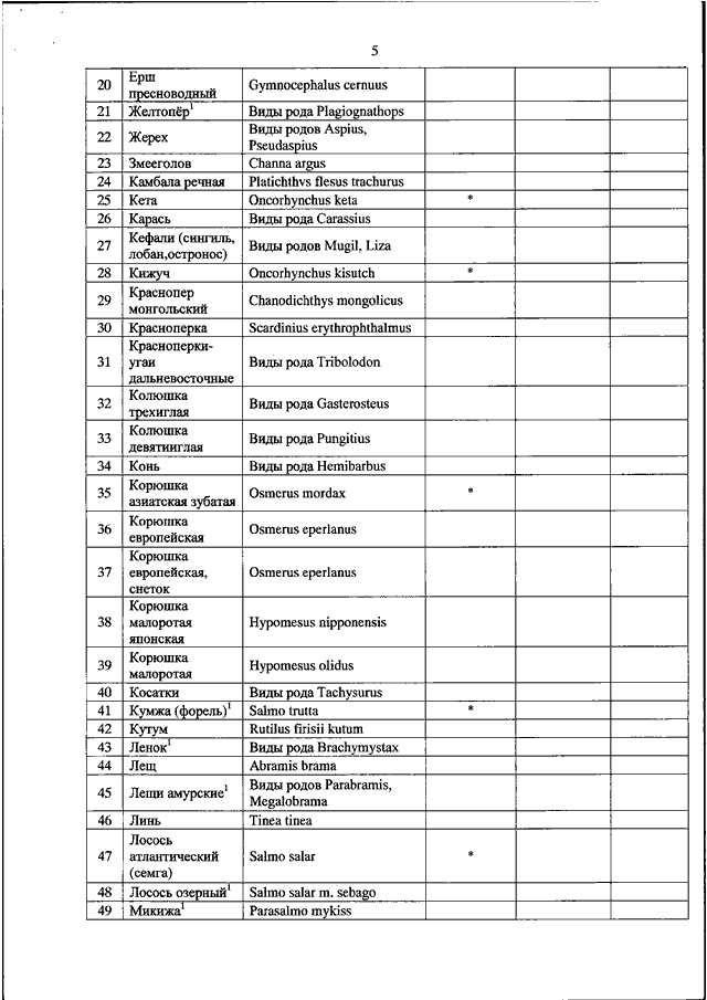 "ОБ УТВЕРЖДЕНИИ ПЕРЕЧНЯ ВИДОВ ВОДНЫХ БИОЛОГИЧЕСКИХ РЕСУРСОВ, В