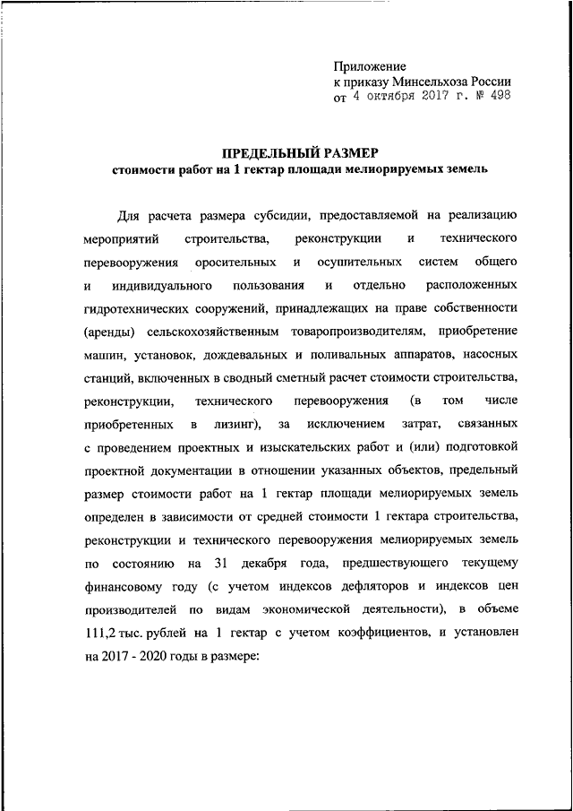 "ОБ УТВЕРЖДЕНИИ ПРЕДЕЛЬНОГО РАЗМЕРА СТОИМОСТИ РАБОТ НА 1 ГЕКТАР ПЛОЩАДИ МЕЛИОРИРУЕМЫХ ЗЕМЕЛЬ"