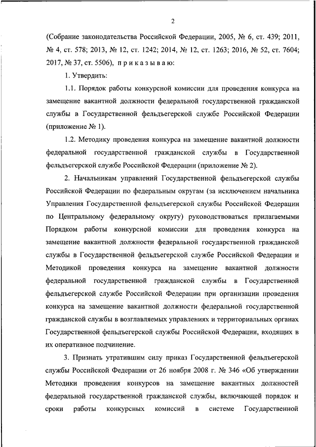 "ОБ УТВЕРЖДЕНИИ ПОРЯДКА РАБОТЫ КОНКУРСНОЙ КОМИССИИ ДЛЯ ПРОВЕДЕНИЯ КОНКУРСА НА ЗАМЕЩЕНИЕ ВАКАНТНОЙ ДОЛЖНОСТИ ФЕДЕРАЛЬНОЙ ГОСУДАРСТВЕННОЙ ГРАЖДАНСКОЙ СЛУЖБЫ В ГОСУДАРСТВЕННОЙ ФЕЛЬДЪЕГЕРСКОЙ СЛУЖБЕ РОССИЙСКОЙ ФЕДЕРАЦИИ И МЕТОДИКИ ПРОВЕДЕНИЯ КОНКУРСА НА ЗАМЕЩЕНИЕ ВАКАНТНОЙ ДОЛЖНОСТИ ФЕДЕРАЛЬНОЙ ГОСУДАРСТВЕННОЙ ГРАЖДАНСКОЙ СЛУЖБЫ В ГОСУДАРСТВЕННОЙ ФЕЛЬДЪЕГЕРСКОЙ СЛУЖБЕ РОССИЙСКОЙ ФЕДЕРАЦИИ"