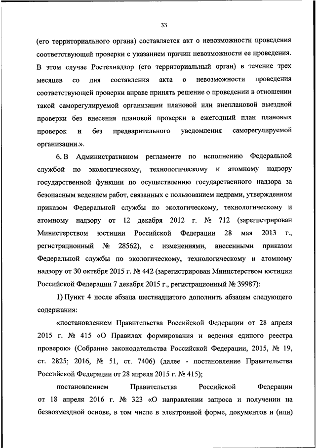 "О ВНЕСЕНИИ ИЗМЕНЕНИЙ В ОТДЕЛЬНЫЕ АДМИНИСТРАТИВНЫЕ РЕГЛАМЕНТЫ ФЕДЕРАЛЬНОЙ СЛУЖБЫ ПО ЭКОЛОГИЧЕСКОМУ, ТЕХНОЛОГИЧЕСКОМУ И АТОМНОМУ НАДЗОРУ ПО ИСПОЛНЕНИЮ ГОСУДАРСТВЕННЫХ ФУНКЦИЙ ПО ОСУЩЕСТВЛЕНИЮ ГОСУДАРСТВЕННОГО КОНТРОЛЯ (НАДЗОРА) В ЦЕЛЯХ ПРИВЕДЕНИЯ В СООТВЕТСТВИЕ С ЗАКОНОДАТЕЛЬСТВОМ РОССИЙСКОЙ ФЕДЕРАЦИИ О ГОСУДАРСТВЕННОМ КОНТРОЛЕ (НАДЗОРЕ)"