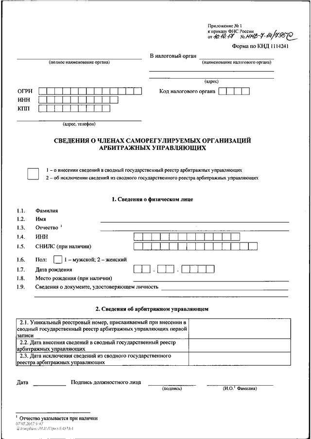 ПРИКАЗ ФНС РФ от 10.10.2017 N ММВ-7-14/795@