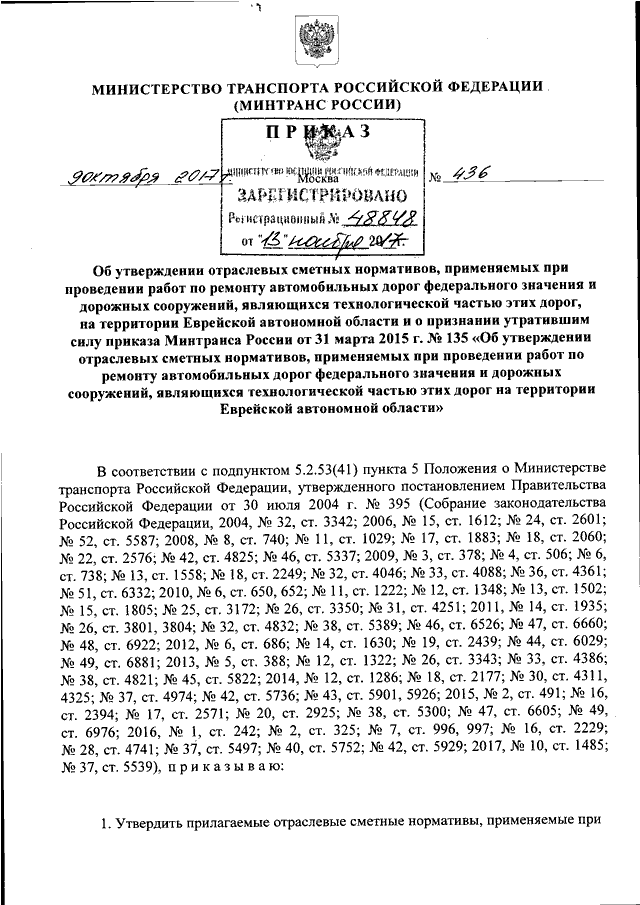 ПРИКАЗ Минтранса РФ от 09.10.2017 N 436