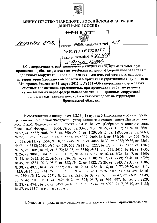 ПРИКАЗ Минтранса РФ от 09.10.2017 N 435