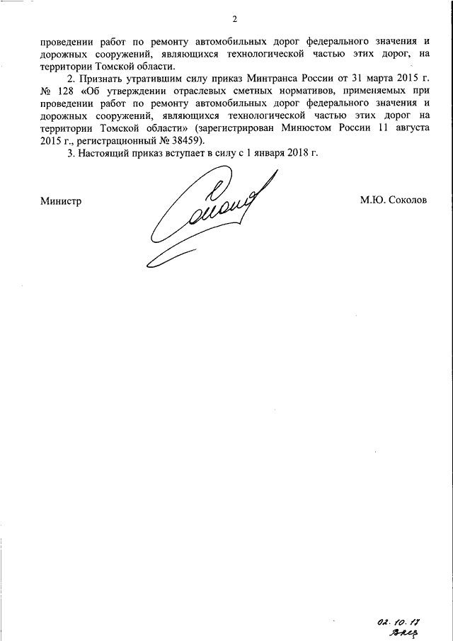 "ОБ УТВЕРЖДЕНИИ ОТРАСЛЕВЫХ СМЕТНЫХ НОРМАТИВОВ, ПРИМЕНЯЕМЫХ ПРИ ПРОВЕДЕНИИ РАБОТ ПО РЕМОНТУ АВТОМОБИЛЬНЫХ ДОРОГ ФЕДЕРАЛЬНОГО ЗНАЧЕНИЯ И ДОРОЖНЫХ СООРУЖЕНИЙ, ЯВЛЯЮЩИХСЯ ТЕХНОЛОГИЧЕСКОЙ ЧАСТЬЮ ЭТИХ ДОРОГ, НА ТЕРРИТОРИИ ТОМСКОЙ ОБЛАСТИ И О ПРИЗНАНИИ УТРАТИВШИМ СИЛУ ПРИКАЗА МИНТРАНСА РОССИИ ОТ 31 МАРТА 2015 Г. N 128 "ОБ УТВЕРЖДЕНИИ ОТРАСЛЕВЫХ СМЕТНЫХ НОРМАТИВОВ, ПРИМЕНЯЕМЫХ ПРИ ПРОВЕДЕНИИ РАБОТ ПО РЕМОНТУ АВТОМОБИЛЬНЫХ ДОРОГ ФЕДЕРАЛЬНОГО ЗНАЧЕНИЯ И ДОРОЖНЫХ СООРУЖЕНИЙ, ЯВЛЯЮЩИХСЯ ТЕХНОЛОГИЧЕСКОЙ ЧАСТЬЮ ЭТИХ ДОРОГ НА ТЕРРИТОРИИ ТОМСКОЙ ОБЛАСТИ"