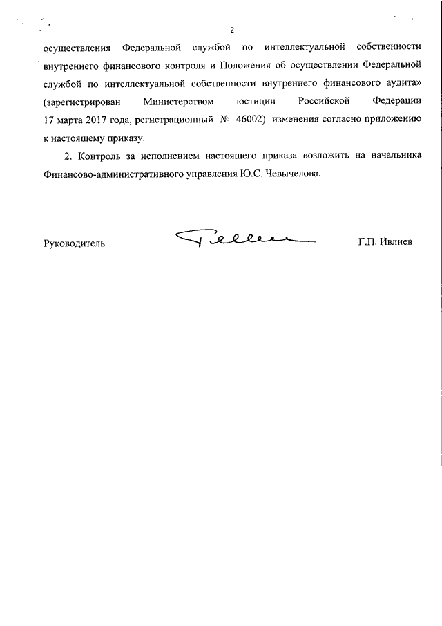 "О ВНЕСЕНИИ ИЗМЕНЕНИЙ В ПРИКАЗ ФЕДЕРАЛЬНОЙ СЛУЖБЫ ПО ИНТЕЛЛЕКТУАЛЬНОЙ СОБСТВЕННОСТИ ОТ 23 ДЕКАБРЯ 2016 Г. N 206 "ОБ УТВЕРЖДЕНИИ ПОРЯДКА ОРГАНИЗАЦИИ И ОСУЩЕСТВЛЕНИЯ ФЕДЕРАЛЬНОЙ СЛУЖБОЙ ПО ИНТЕЛЛЕКТУАЛЬНОЙ СОБСТВЕННОСТИ ВНУТРЕННЕГО ФИНАНСОВОГО КОНТРОЛЯ И ПОЛОЖЕНИЯ ОБ ОСУЩЕСТВЛЕНИИ ФЕДЕРАЛЬНОЙ СЛУЖБОЙ ПО ИНТЕЛЛЕКТУАЛЬНОЙ СОБСТВЕННОСТИ ВНУТРЕННЕГО ФИНАНСОВОГО АУДИТА"